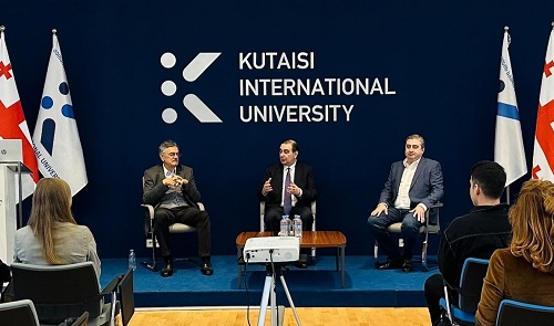 ქუთაისის საერთაშორისო უნივერსიტეტის საპატიო პრეზიდენტი პროფესორი ვოლფგანგ ჰერმანი და საერთაშორისო მრჩეველთა საბჭოს თავმჯდომარე პროფესორი მიხეილ ჩხენკელი უნივერსიტეტის პროფესორებს შეხვდნენ