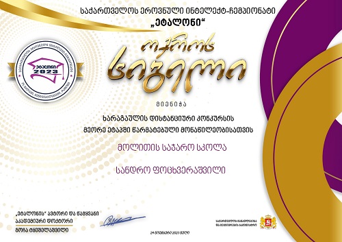ხარაგაულის მუნიციპალიტეტის სოფელ მოლითის საჯარო სკოლის მოსწავლეები საქართველოს ეროვნულ ინტელექტ-ჩემპიონატ „ეტალონში“ უდიდესი მონდომებითა და ინტერესით ჩაერთნენ.