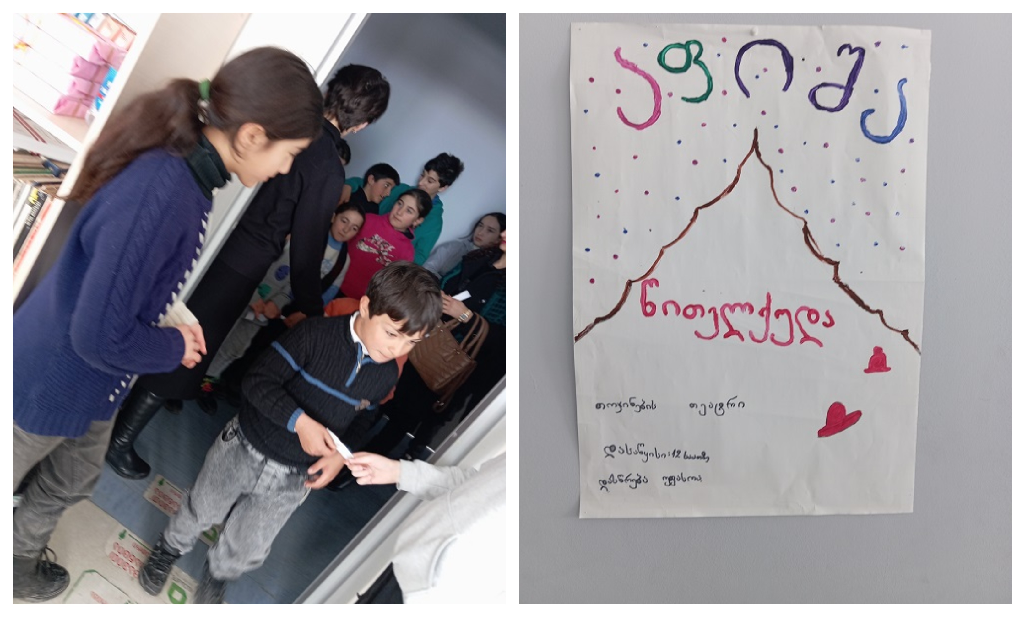 სწორედ ამ მიზნით, სკოლაში თოჯინების თეატრის ინსცენირება გაიმართა, მოსწავლეებმა დაამზადეს აფიშა, ბილეთები და განასახიერეს, თუ როგორ უნდა იქცეოდნენ ადამიანები თეატრში..